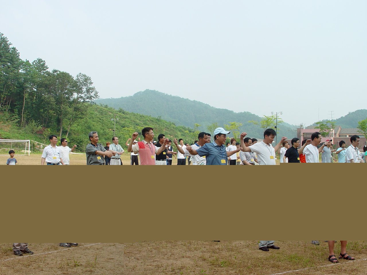 준비운동을 하는 아버지들과 학생들의 진지한 모습입니다.