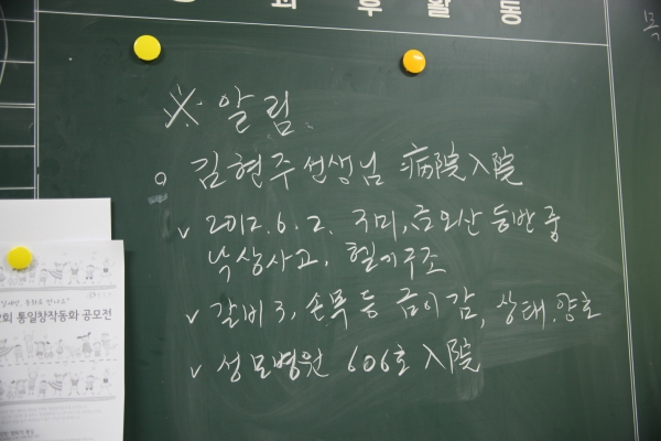 김현주 선생님께서 편찮으십니다.
