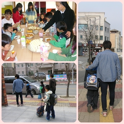 아이들 학교를 등교 시켜 주네요~