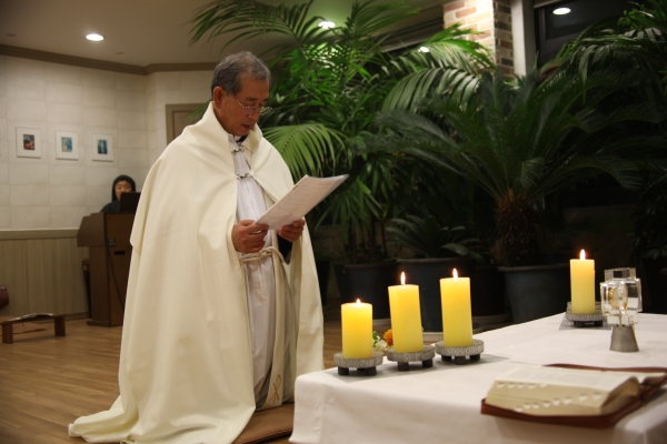 신부님과 수녀님4분이 성당에 모여서 저녁8시에 성체조배를 가졌습니다.