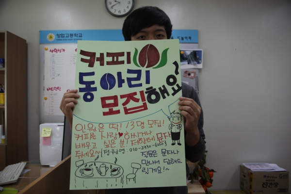 2학년 정원영 학생이 커피 동아리를 개설한답니다~~