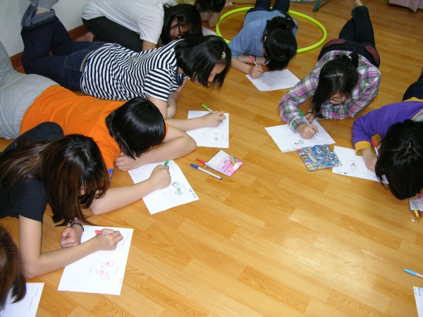 열심히 프로그램지를 작성 중인 산 홈 학생들~!