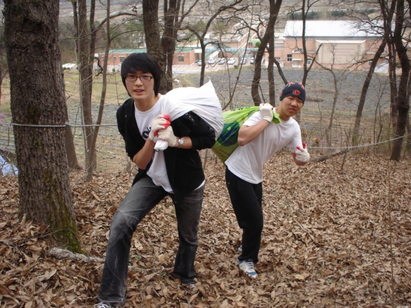 채취한 부엽토를 나르고...