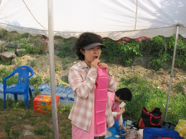 응원도구를 힘주어 불며~~~