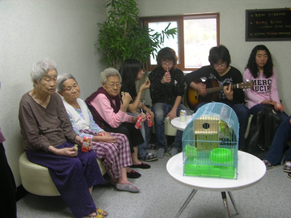 학생들은 할머님들에게 노래를 연습하여 동마다 다니면서 불러드렸는데 할머님들이 가만히 앉아서 들어주셔서 감사!