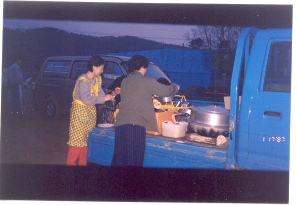 개교후 주방시설이 없어서 옥산 천주교회 교우들이 음식을 해서 트럭으로 날랐다.